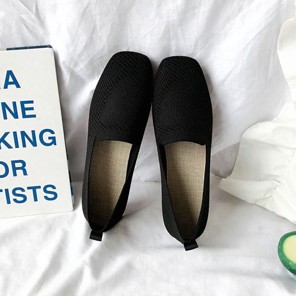 Wholesale Solid Color Thin Section Breathable Flat Shoes Women's New Soft Sole Woven Shoes Images |